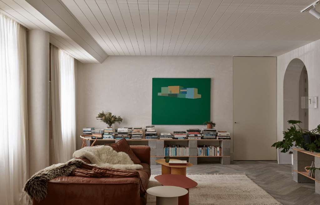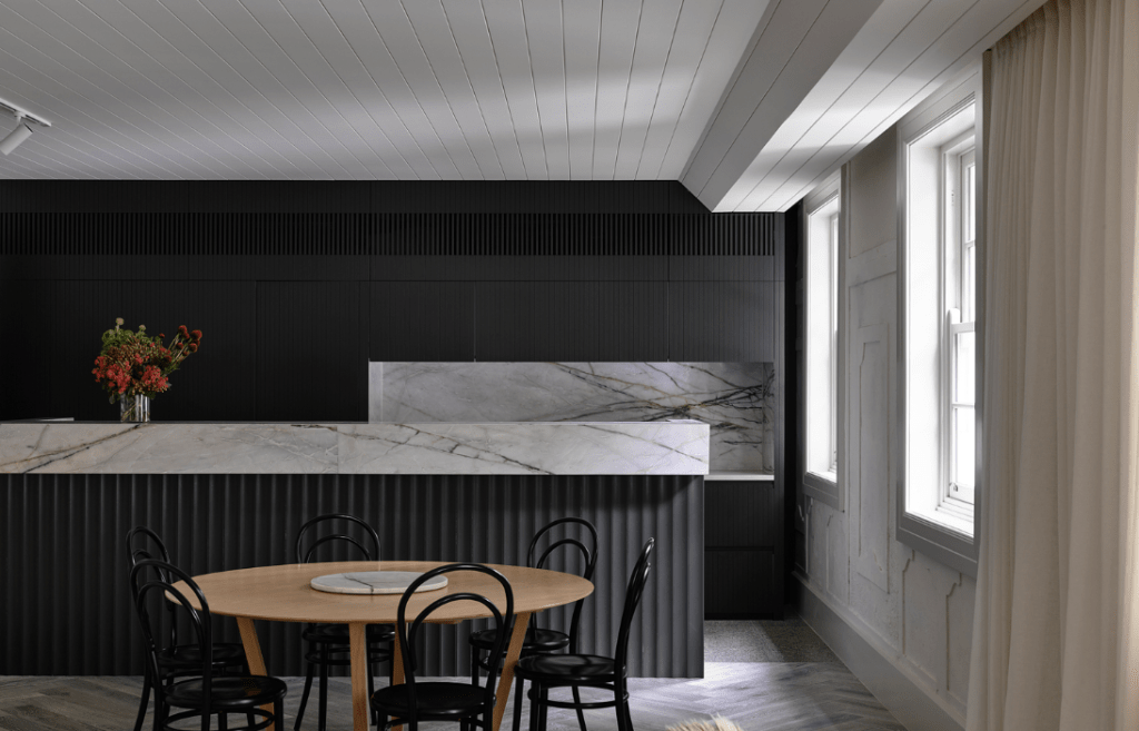 Purchased by Julian Kosloff and Stephanie Bullock of Kosloff Architects, the renovation has to be seen to be believed. One of the most striking elements is how they blend the sleek contemporary aesthetic with the original features of the building – with original subway tiles, brickwork, rendered finishes and art-deco wall panelling blending with the new additions.